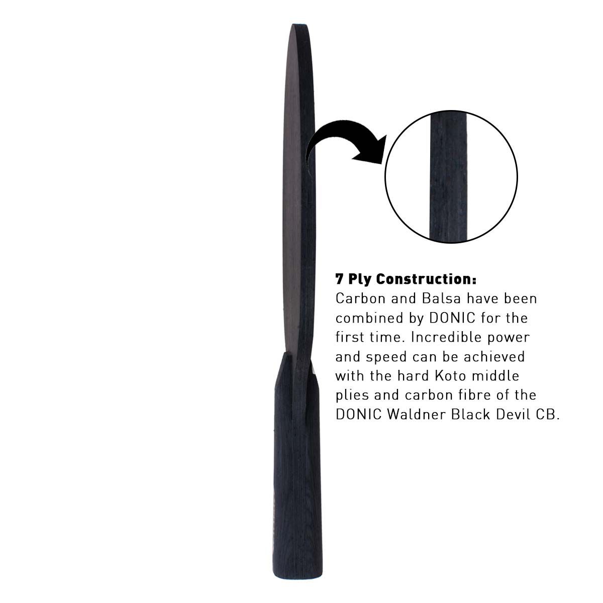 This is the first blade in which DONIC has combined balsa and carbon. The soft balsa core ensures good control and a light touch while the harder koto intermediate veneers and the carbon fibres give this blade unmatched power and dynamics.